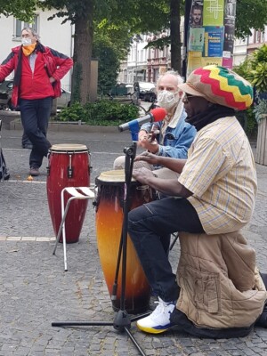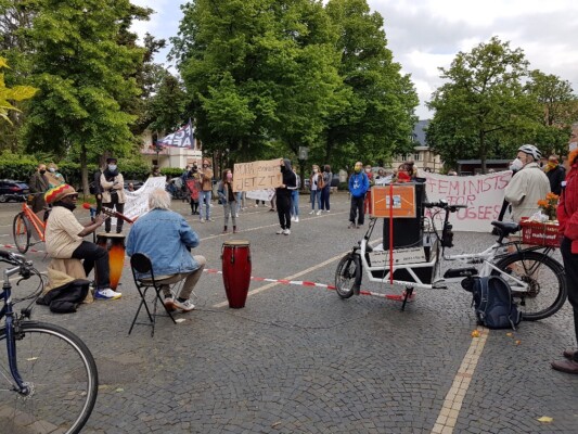 Unter dem Motto „Corona kennt keine Grenzen. Unser Mitgefühl auch nicht. Die Camps auf den griechischen Inseln jetzt evakuieren!“ konnten wir mit 3 Kundgebungen in Heidelberg endlich wieder ganz analog und persönlich unser Thema in der Öffentlichkeit sichtbar machen. An den drei Standorten Friedrich-Ebert-Platz, Wilhelmsplatz und auf der Schwetzinger Terrasse in der Bahnstadt waren wir nacheinander mit Transparenten, Redebeiträgen und Musik präsent. Hier ein paar Eindrücke von dem Tag.