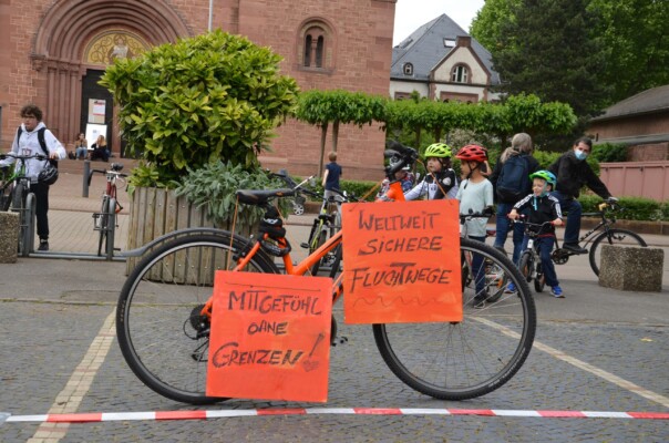 Am 24. April fanden in verschiedenen Städten, entlang der geplanten Route der „Rettungskette zum Mittelmeer“, Auftaktveranstaltungen für die große Rettungskette am 18.09.2021 statt. Ziel der Aktion im September ist eine Menschenkette von Hamburg bis zum Mittelmeer. In Heidelberg haben wir als Auftaktveranstaltung eine Fahrrad-Demo veranstaltet.