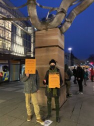 Die Seebrücken Baden-Württembergs und der Flüchtlingsrat Baden-Württemberg haben am 20.11.2021 zu einem landesweiten Aktionstag unter dem Motto „Menschenrechte wahren – Koalitionsvertrag umsetzen“ aufgerufen. In Heidelberg haben wir uns zu einer Mahnwache getroffen, denn: