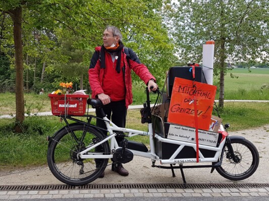 Am 24. April fanden in verschiedenen Städten, entlang der geplanten Route der „Rettungskette zum Mittelmeer“, Auftaktveranstaltungen für die große Rettungskette am 18.09.2021 statt. Ziel der Aktion im September ist eine Menschenkette von Hamburg bis zum Mittelmeer. In Heidelberg haben wir als Auftaktveranstaltung eine Fahrrad-Demo veranstaltet.