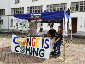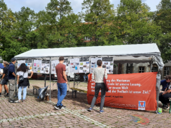 Gemeinsam mit Solidarity City Heidelberg und dem Asyl-Arbeitskreis waren wir mit einem Infostand auf dem Uniplatz vertreten, um uns für echte Solidarität in Krisenzeiten einzusetzen.