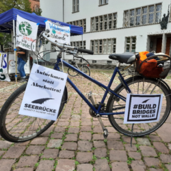 Am 24. April fanden in verschiedenen Städten, entlang der geplanten Route der „Rettungskette zum Mittelmeer“, Auftaktveranstaltungen für die große Rettungskette am 18.09.2021 statt. Ziel der Aktion im September ist eine Menschenkette von Hamburg bis zum Mittelmeer. In Heidelberg haben wir als Auftaktveranstaltung eine Fahrrad-Demo veranstaltet.