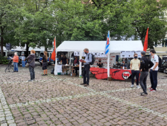 Infostand beim Aktionstag "Solidarisch aus der Krise!"