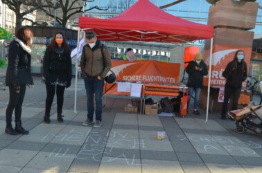 Wir haben auf dem Bismarckplatz eine Mahnwache durchgeführt, die die Forderung nach der Aufnahme von geflüchteten Menschen aus den Lagern an den Außengrenzen der EU unterstreicht.