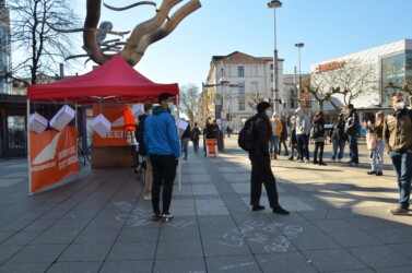 Gemeinsam mit Solidarity City Heidelberg und dem Asyl-Arbeitskreis waren wir mit einem Infostand auf dem Uniplatz vertreten, um uns für echte Solidarität in Krisenzeiten einzusetzen.