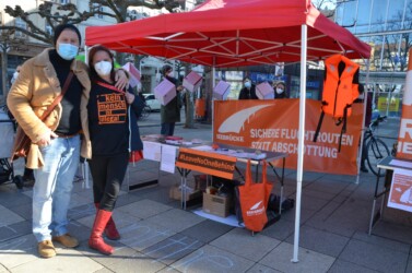 Am 30.01.2020 haben wir einen Doppelaktionstag veranstaltet, um einerseits für den baden-württembergischen Aktionstag „Sicherer Hafen zum Kommen & Bleiben“ die Thematik rund um die menschenverachtende Abschiebepraxis des Landes in den Fokus rücken; andererseits wollten wir auf den 1116 Menschen aufmerksam machen und gedenken, die 2020 im Mittelmeer auf der Flucht nach Europa ertrunken sind.