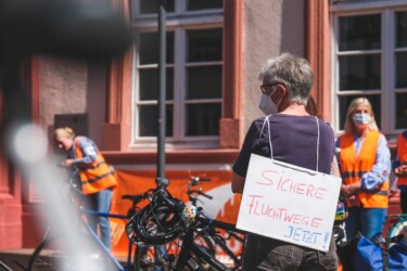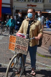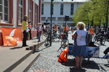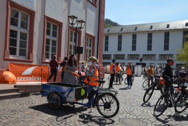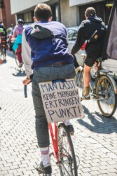 Am 24. April fanden in verschiedenen Städten, entlang der geplanten Route der „Rettungskette zum Mittelmeer“, Auftaktveranstaltungen für die große Rettungskette am 18.09.2021 statt. Ziel der Aktion im September ist eine Menschenkette von Hamburg bis zum Mittelmeer. In Heidelberg haben wir als Auftaktveranstaltung eine Fahrrad-Demo veranstaltet.