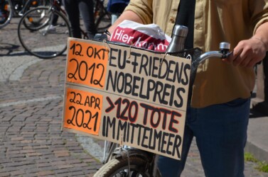 Am 23. April waren wir hierzu auch auf der Straße, um Haltung zu zeigen – gegen jeden Rassismus, für Solidarität mit allen Flüchtenden und für sichere Fluchtwege für alle!