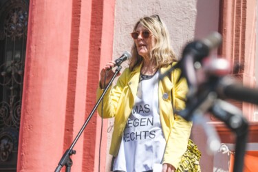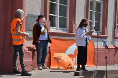 U.a. waren mit einem Redebeitrag dabei: Sigrid Zweygart-Perez für die Seebrücke, Gabriele Soyka für BAFF (Integration des Ankunftszentrums in die PHV/Keine Verlagerung in die Wolfsgärten) und Leonie für das Solicamp.
