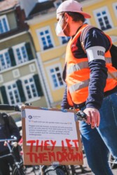 Um dennoch Flagge zu zeigen, riefen wir dazu auf, Bilder von einem Paar Schuhe zu posten, die gerne mit bei der Demo gewesen wären – beschriftet/dekoriert mit #leavenoonebehind und sonstigen Sprüchen, Schildern, Bannern, Bildern oder Plakaten, die die Meinung zur Situation ausdrückten. Die Bilder wurden auf Facebook, Twitter und Instagram gepostet, ein paar Eindrücke findet Ihr hier: