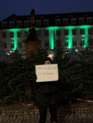 Die Sicheren Häfen Heidelberg und Schriesheim beteiligten sich an der Aktion und beleuchteten am 12.12.21 das Rathaus Heidelberg, den Karlsplatz Heidelberg und das Rathaus Schriesheim grün. Auch viele Kirchen unterstützen die Aktion, so durften wir zum Beispiel in der Evangelischen Kirche in Schriesheim zur Sonntags-Predigt grüne Glas-Lichter auslegen und die Gemeinde-Mitglieder einladen, sich ein grünes Licht mit nach Hause zu nehmen.