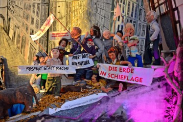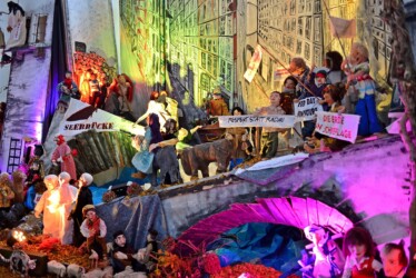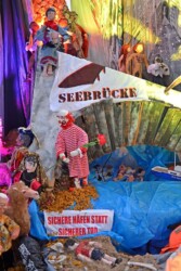 Die „alternative“ Krippe in der Jesuitenkirche Heidelberg gibt es schon seit 2000. Das große Thema 2019 war neben der Klimakrise die Situation auf dem Mittelmeer. Dazu kamen zwei neue Figuren in der Installation hinzu: Alan Kurdi, der syrische Junge, der im September 2015 ertrunken an der türkischen Küste angespült wurde, und Carola Rackete, die als Kapitänin des Bootes „Sea-Watch 3“ im letzten Juni Flüchtlinge aus dem Mittelmeer rettete und sich mit der damaligen rechtspopulistischen Regierung Italiens anlegte. Auch ihr Seenotrettungsschiff und ein zweites mit dem Namen Alan Kurdis sind neu dabei.