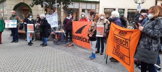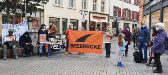 Die Seebrücken Baden-Württembergs und der Flüchtlingsrat Baden-Württemberg haben am 20.11.2021 zu einem landesweiten Aktionstag unter dem Motto „Menschenrechte wahren – Koalitionsvertrag umsetzen“ aufgerufen. In Heidelberg haben wir uns zu einer Mahnwache getroffen, denn: