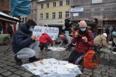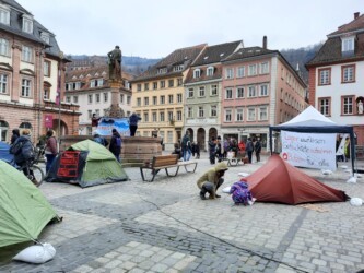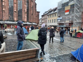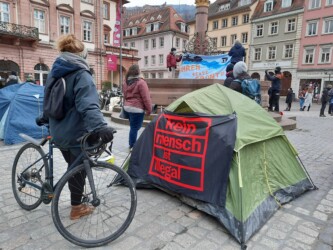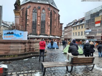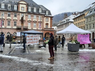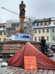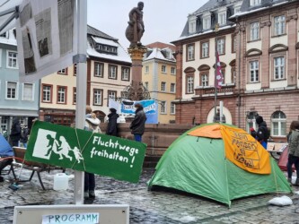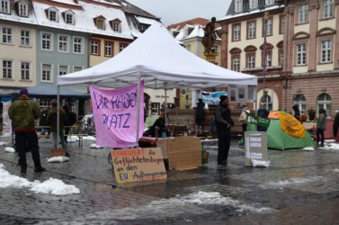 Für die Evakuierung der Flüchtlingslager an den EU-Außengrenzen veranstaltete Solicamp_hd ab dem 16. Januar für eine Woche ein Protestcamp vor dem Heidelberger Rathaus. Wir von der Seebrücke waren am 17.01. mit Redebeiträgen und Mitmach-Aktionen dabei.