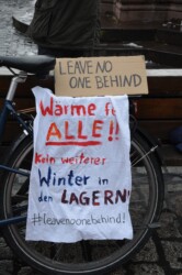 Für den 28. März hatten wir angesichts der Situation in den Lagern auf den griechischen Inseln eine Demo geplant, die im Rahmen von #LeaveNoOneBehind unsere Solidarität zeigen sollte. Aufgrund der Corona-Situation war die Durchführung der Demo nicht möglich.