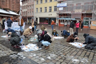 Am 30.01.2020 haben wir einen Doppelaktionstag veranstaltet, um einerseits für den baden-württembergischen Aktionstag „Sicherer Hafen zum Kommen & Bleiben“ die Thematik rund um die menschenverachtende Abschiebepraxis des Landes in den Fokus rücken; andererseits wollten wir auf den 1116 Menschen aufmerksam machen und gedenken, die 2020 im Mittelmeer auf der Flucht nach Europa ertrunken sind.