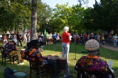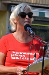 U.a. waren mit einem Redebeitrag dabei: Sigrid Zweygart-Perez für die Seebrücke, Gabriele Soyka für BAFF (Integration des Ankunftszentrums in die PHV/Keine Verlagerung in die Wolfsgärten) und Leonie für das Solicamp.