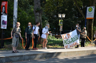Die grünen Lichter knüpfen an die grünen Lichter an, die Anwohner im Grenzgebiet Belarus/Polen ins Fenster stellen, um damit den Flüchtlingen in den Wäldern zu signalisieren: hier bekommt Ihr Hilfe! Die grünen Lichter der Solidarität sollen auch in Deutschland durch die Nacht leuchten. Überall wollen wir zeigen: Wir haben Platz! Für das Recht zu kommen, zu gehen und bleiben! Insbesondere der Ampel wollen wir sagen: schafft humanitäre Korridore, übernehmt Verantwortung und nehmt die Menschen aus dem polnisch-belarussischen Grenzgebiet endlich auf!