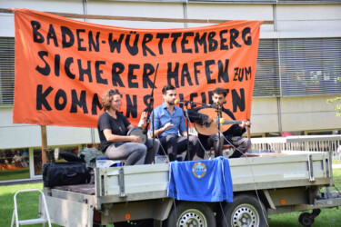 Moria brennt – und Deutschland nimmt nur 1500 Menschen auf? Das liessen wir nicht so stehen! Zum Aktionstag der Initiative „Sicherer Hafen Baden-Württemberg“ am 2.10. forderten wir unsere Landesregierung auf, Landesaufnahmeprogramme zu schaffen, damit alle Kommunen, die Geflüchtete aufnehmen möchten, dies auch können.